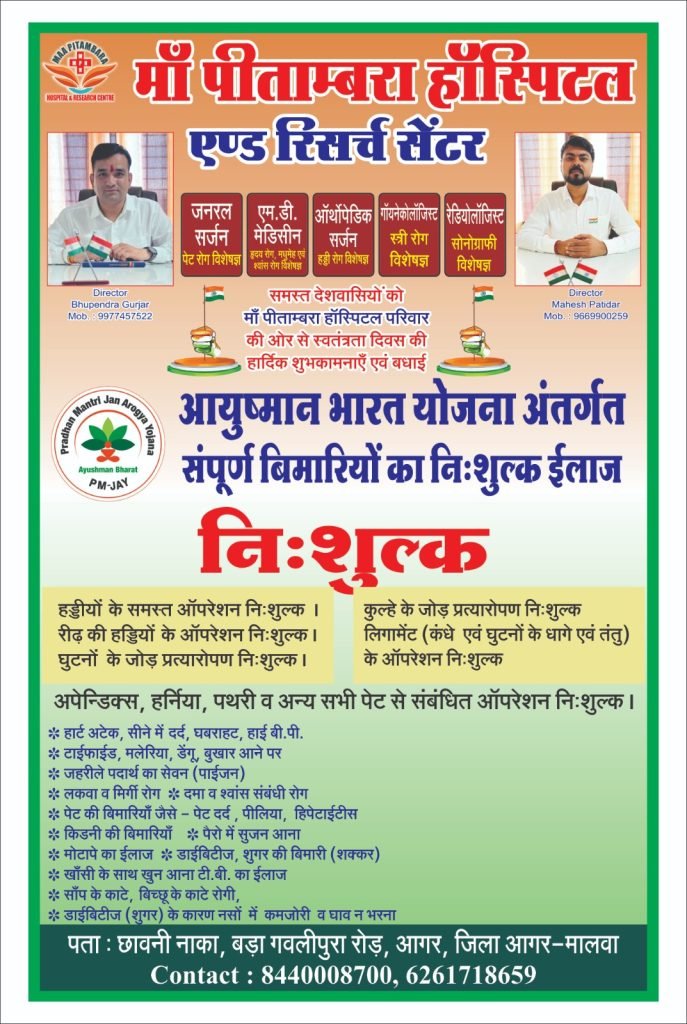 राज कुमार – आगर-मालवा। जिले में स्वतंत्रता दिवस का राष्ट्रीय पर्व देशभक्ति भावना के साथ हर्षोल्लास से मनाया गया। जिसमें जिले की सभी शैक्षणिक संस्थाओं, शासकीय, अशासकीय कार्यालयों में ध्वजारोहण पश्चात, स्कूली बच्चों द्वारा अल सुबह प्रभात फैरिया निकली जाएगी।