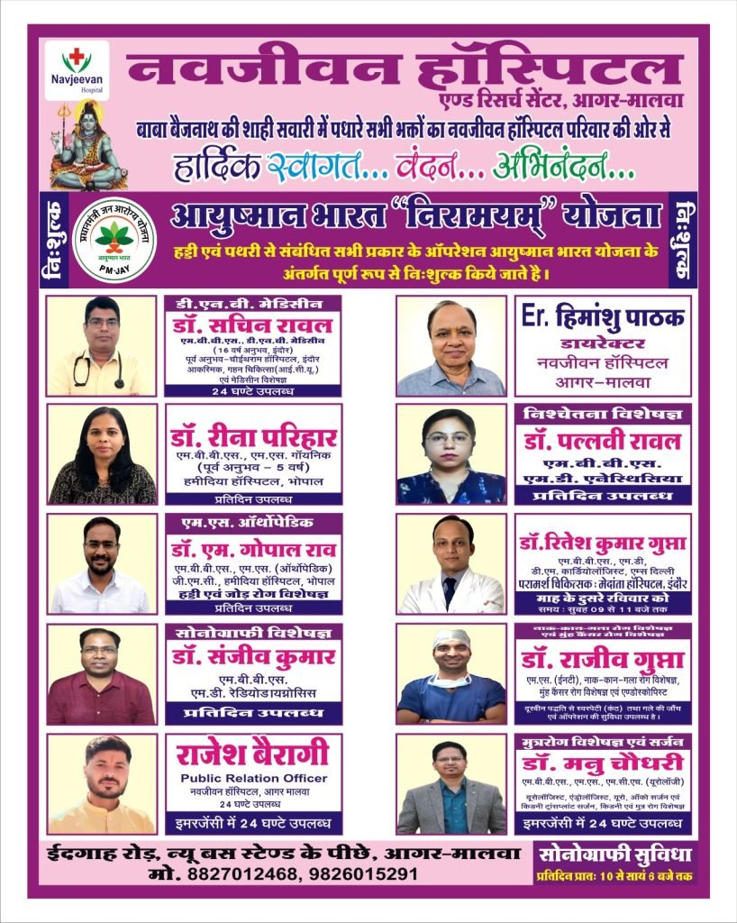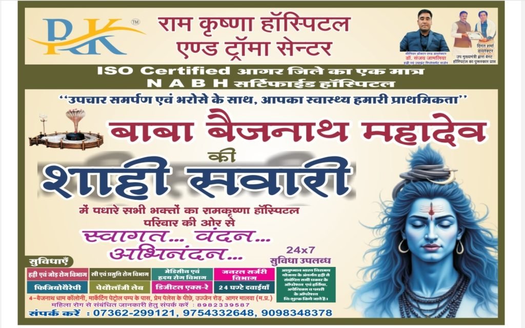 राज कुमार – आगर मालवा। बाबा बैजनाथ महादेव की शाही सवारी, सावन माह के आखिरी सोमवार, 4 अगस्त को बड़ी धुमधाम से निकलेगी।शाही सवारी के दिन प्रातः 3ः00 बजे मंदिर के पट खुलेंगे, 3.30 बजे तक गर्भ गृह सफाई होगी, 3.30 से 4.00 बजे तक बाबा बैजनाथ का पंचामृत स्नान होगा। 4ः30 से 5ः00 के मध्य ब्रह्ममुहूर्त आरती होगी। 5.00 से 7.30 बजे तक गर्भ गृह में बाबा बैजनाथ के दर्शन एवं पूजन कर सकेंगे, इसके पश्चात् गर्भगृह में प्रवेश प्रतिबंधित रहेगा